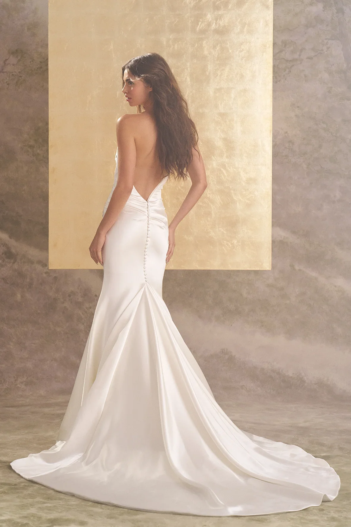 Katherine Tash bridal gowns are effortlessly romantic and timeless, designed for the modern woman who embraces elegance with a touch of whimsy. Known for their luxurious fabrics, intricate details, and artisanal craftsmanship, these gowns embody a delicate balance between classic beauty and contemporary sophistication, all sustainably handcrafted in Los Angeles by a team of skilled local artisans.